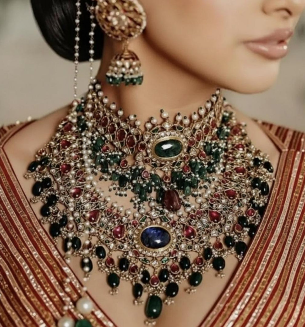 Kashmiri Earrings, Length (5.3 inches), Colour (Green).